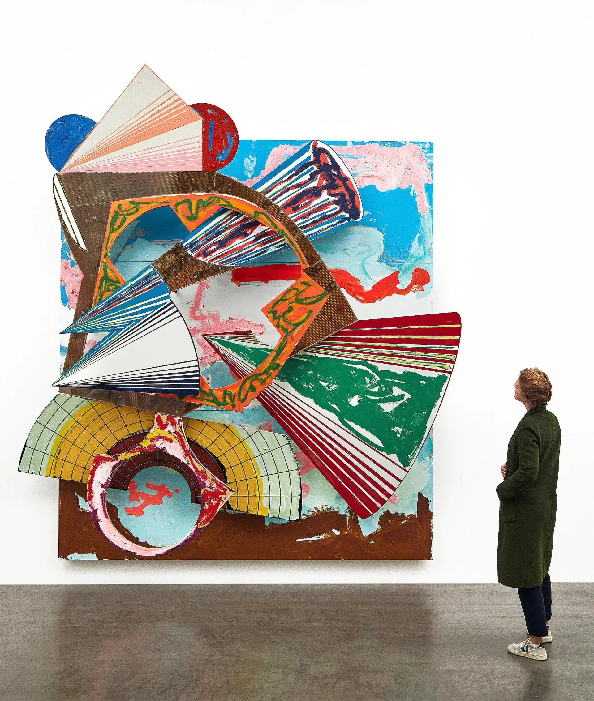 Frank Stella is an American artist best known for his contributions to Minimalism and post-painterly abstraction, creating bold, geometric works that emphasize form, color, and surface over narrative or symbolism. Throughout his career, he continually pushed the boundaries of painting, evolving from flat, hard-edged compositions to dynamic, three-dimensional constructions that blur the line between painting and sculpture.