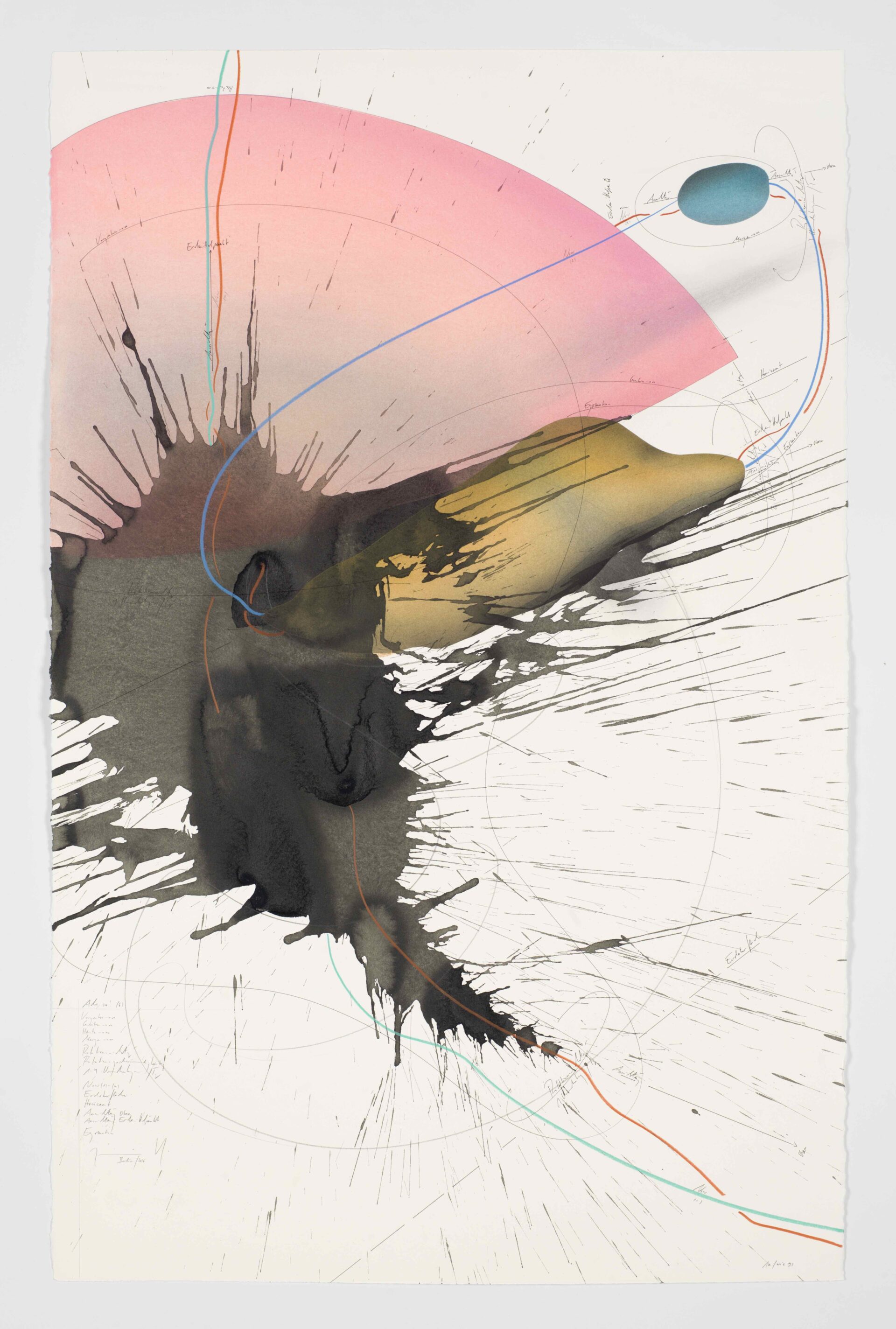 Voigt's abstract works use intricate diagrams and drawings to explore systems of thought, language, and music, blending meticulous detail with fluid gestures.