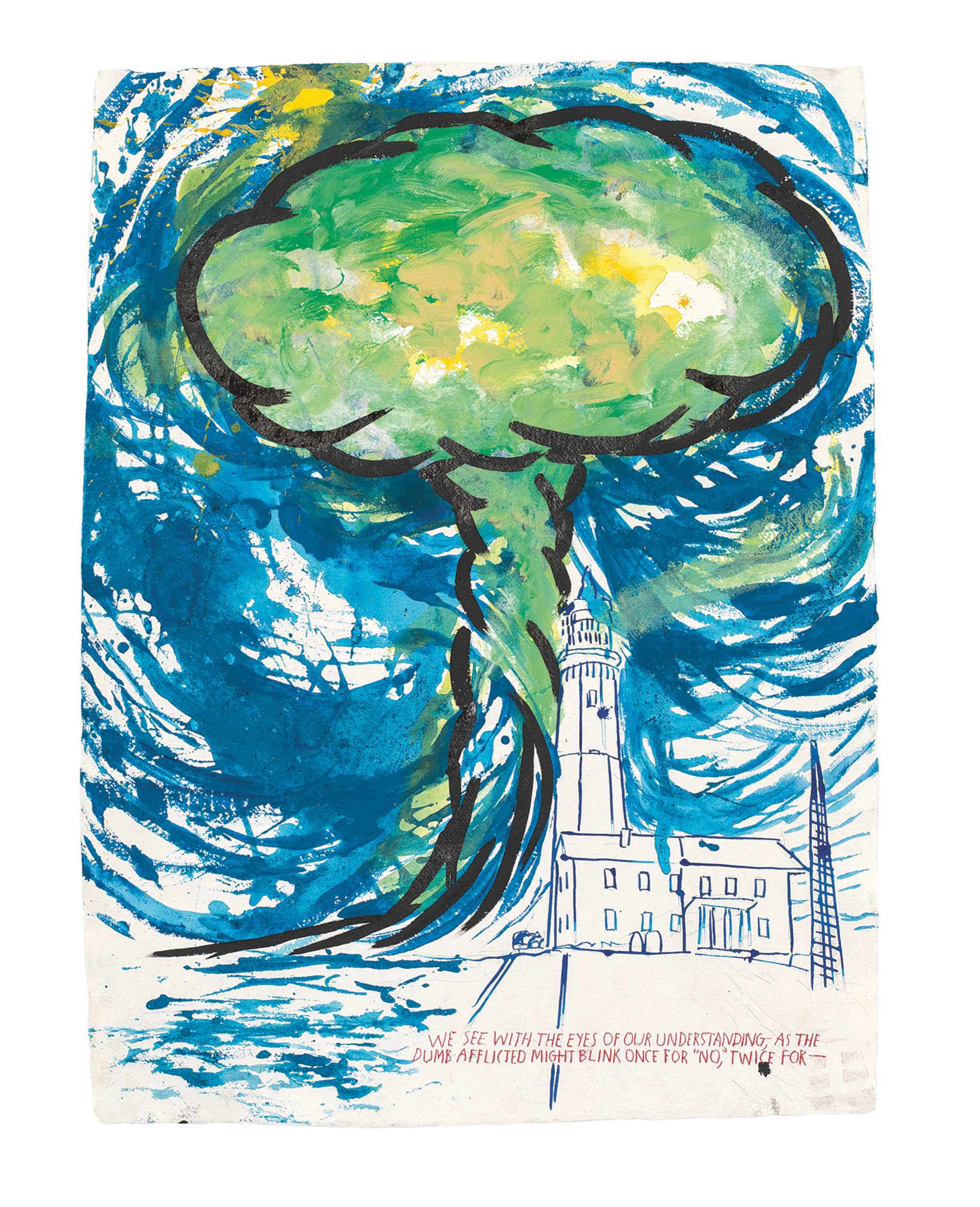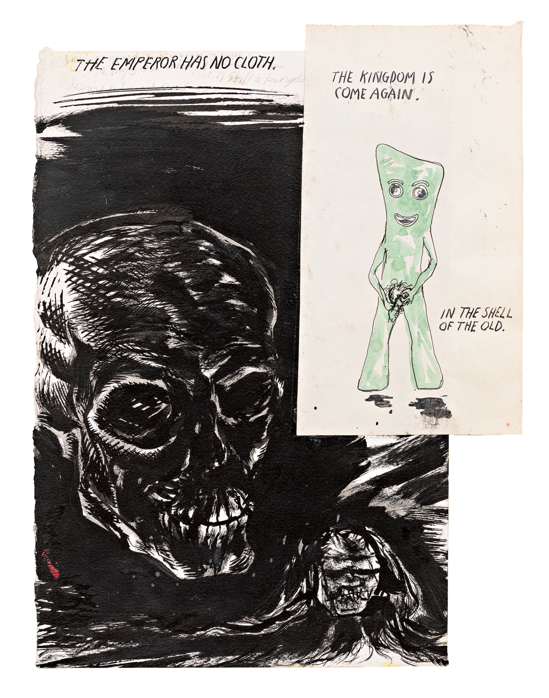 Pettibon is an American artist whose distinctive drawings, often incorporating text and bold lines, comment on American culture, politics, and pop culture. His work has a raw, graphic quality that engages with themes of violence, rebellion, and humor.