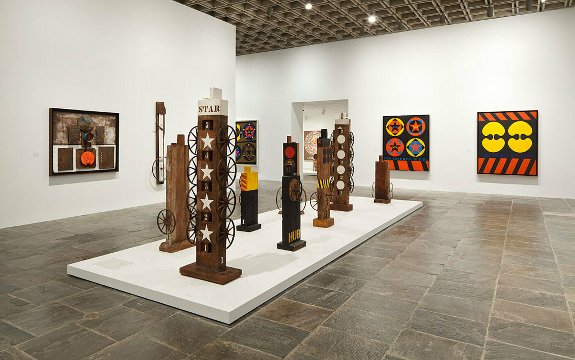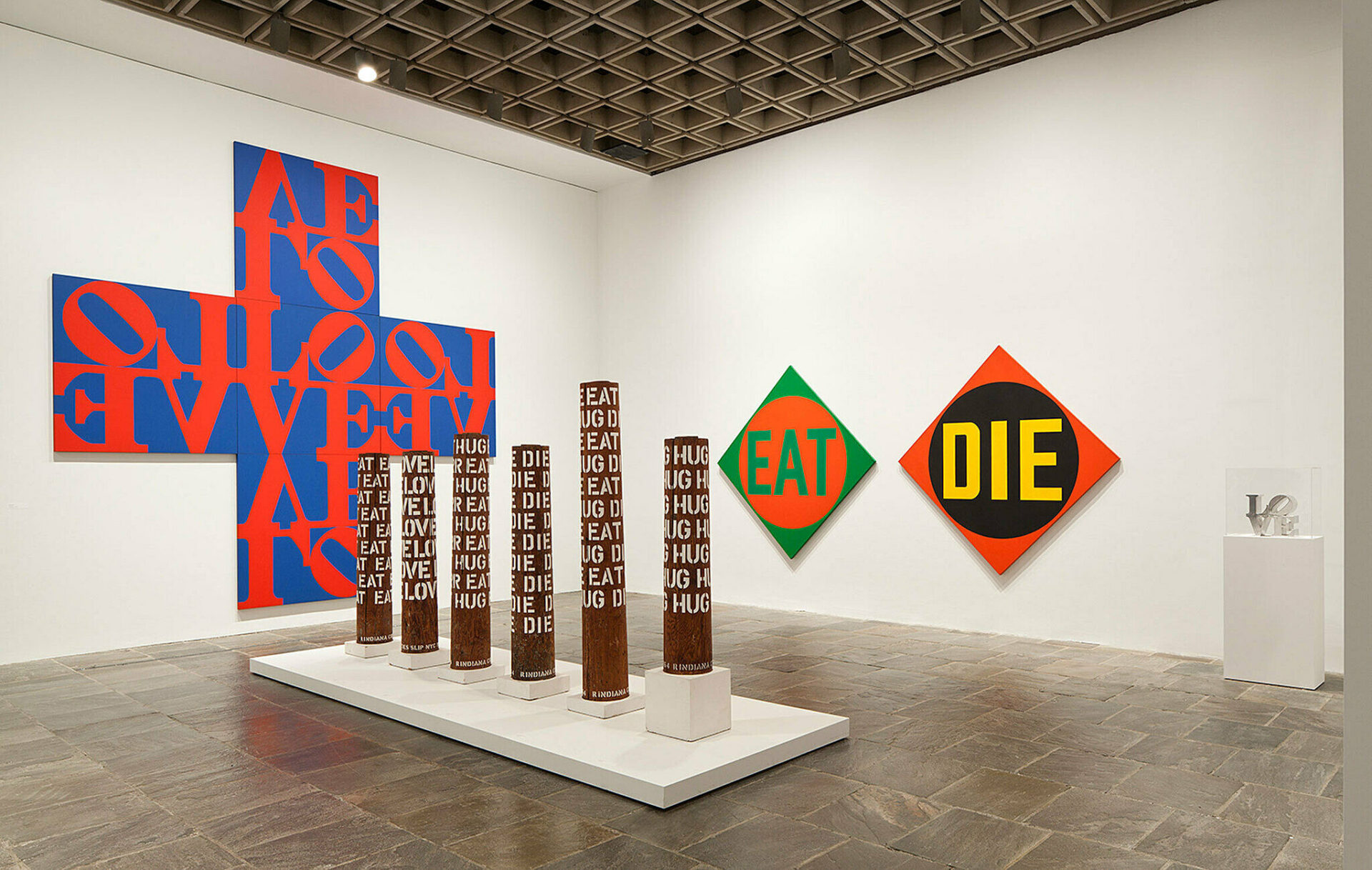 Robert Indiana was an American artist best known for his iconic "LOVE" sculpture and paintings, which became symbols of the Pop Art movement. His work often featured bold, graphic shapes and text, reflecting themes of American culture, romance, and personal identity, while blending abstraction with commercial imagery.