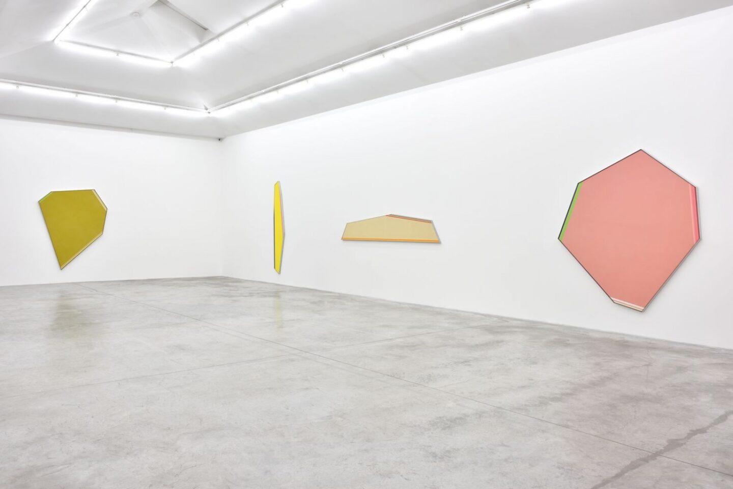 Another artist to challenge the preoccupations of the canvas was Ron Gorchov (1930 – 2020). His oil-on-linen paintings feature biomorphic shapes on vividly coloured backgrounds. The stretcher is concave, forming a saddle-like shape and bridging the gap between sculpture and abstract painting. The critic Robert Morgan said this curved shape shares more similarities to the human perspective than a hardened rectangle. Gorchov believed this to be “a more intentional form that would create a new kind of visual space.” His primal style of painting upon canvases which curved away from the wall played on human perception to challenge the flat rectangular plane usually reserved for the wall which as Donald Judd said, “determines and limits the arrangement of whatever is on or inside of it.”