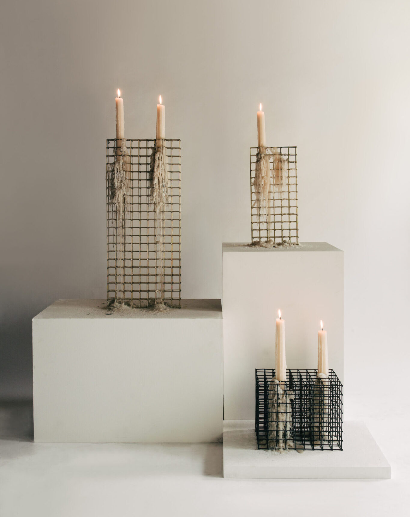 Héctor Esrawe is a Mexico City based designer, architect, and academic whose practice spans furniture, interiors, architecture, and collectible design. He is also one of the founders of Ewe Studio. Working across disciplines, Esrawe is known for a rigorous understanding of materials and production processes, developed through decades of both practice and teaching. His designs balance artisanal knowledge with contemporary manufacturing, producing unique, limited-edition works that feel both timeless and architectural. Notable examples include his coffee tables composed of multiple blocks, reminiscent of the Tower of Babel, and his geometric-grid light holders, where the organic drip of wax creates a striking contrast.