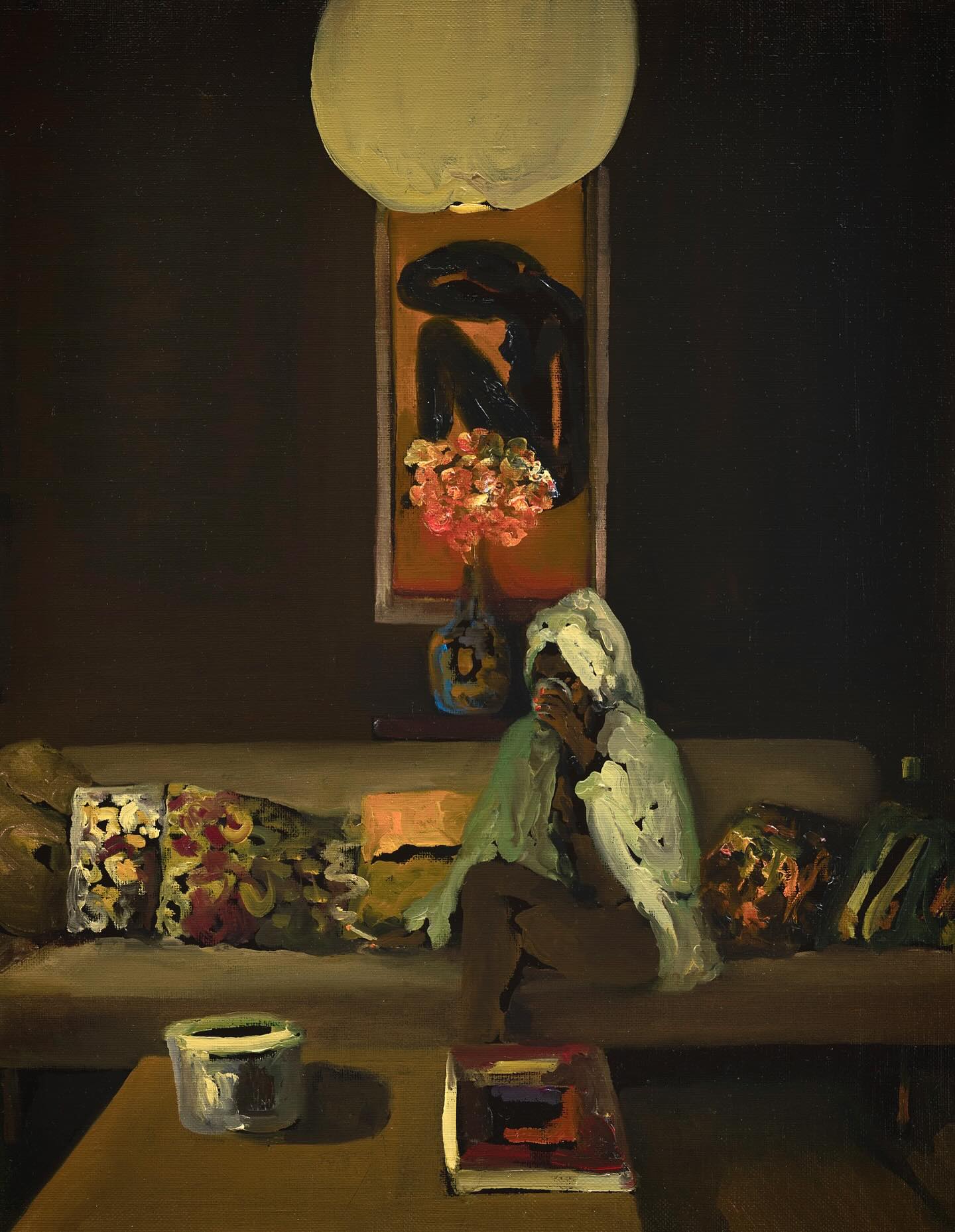 Mckinney’s work captures quiet moments of introspection and intimacy through interior scenes, where Black female figures emerge from darkness in carefully composed chiaroscuro. Lit by a lamp or the glow of a cigarette, her subjects rest in stillness, accented by vivid details like red fingernails. In her latest paintings, Mckinney adopts a looser, more visceral style, embracing silence and in-between spaces as a response to change. Intimate in scale, the works invite viewers to slow down, reflect, and sit with discomfort as a path to growth.