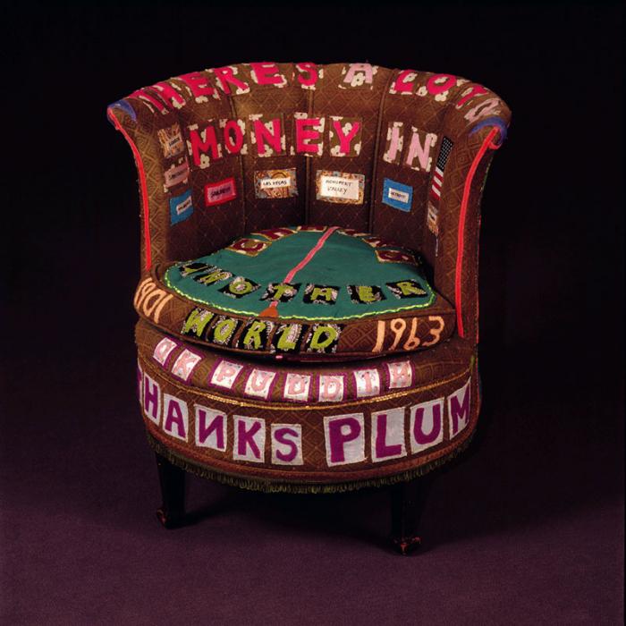 In There’s a Lot of Money in Old Chairs (1994), Emin covers a traditional upholstered armchair with appliquéd phrases. The padded back and rounded seat remain intact, but the object is overlaid with brightly coloured text that wraps around its curved form. Words follow the structure of the chair, encircling its base and rising across the backrest. Language becomes inseparable from the object’s physical presence. By stitching personal phrases into its surface, Emin transforms furniture into a surrogate figure.