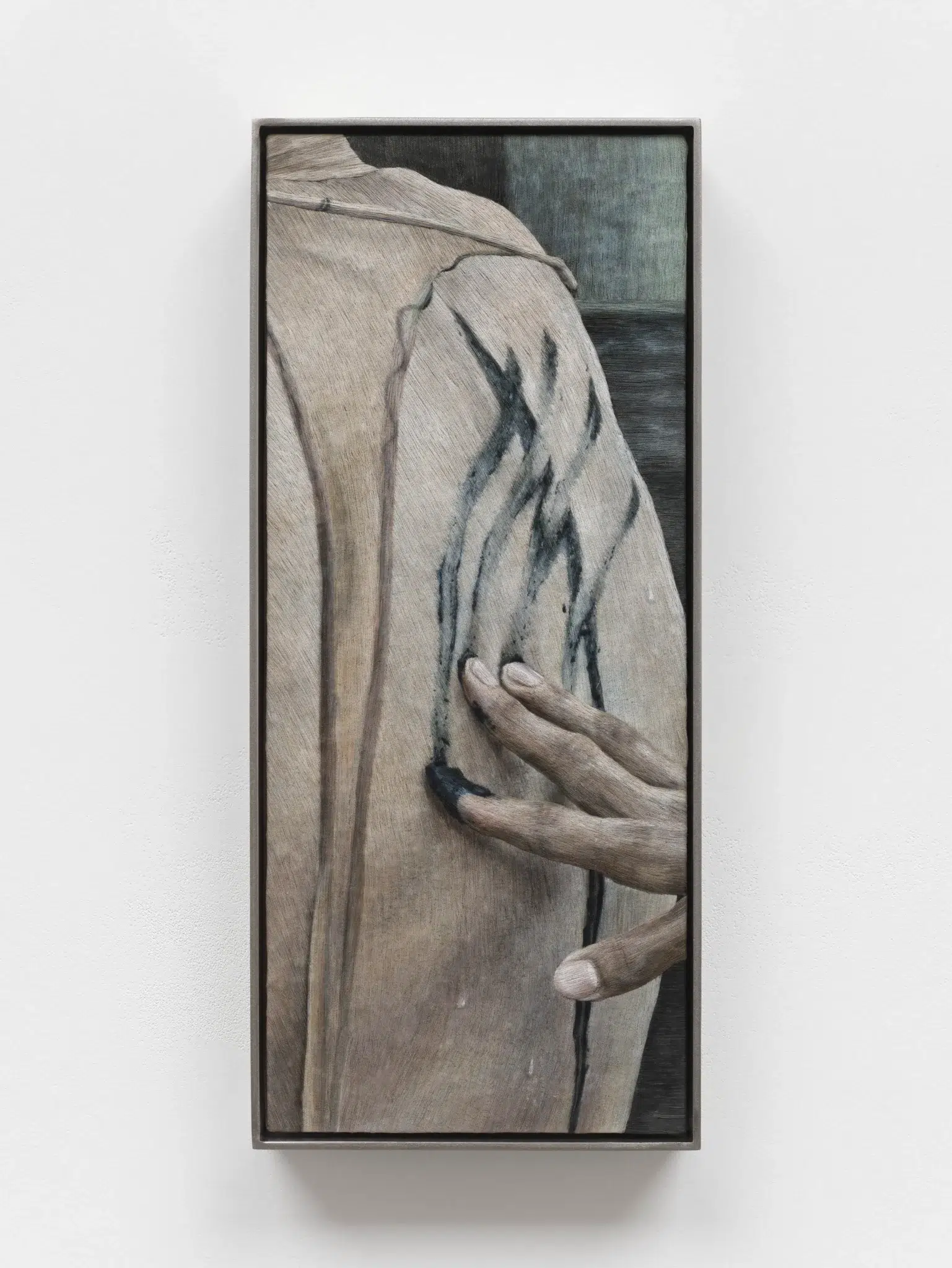 Last summer at Berlin’s Hamburger Bahnhof, Hosnedlová created an exhibition commissioned by Chanel that received widespread critical acclaim. She constructed monumental forms from meticulously arranged fabric, metal, and other materials, shaping spaces that felt at once architectural and ethereal. Alongside these imposing structures, her smaller works offer a more intimate yet equally compelling experience. At first glance, they resemble traditional canvases; only upon closer inspection does their true nature emerge. Composed of fabric, they introduce an unexpected fragility that contrasts with the grandeur of the larger installations, while reinforcing her sustained exploration of material presence.
