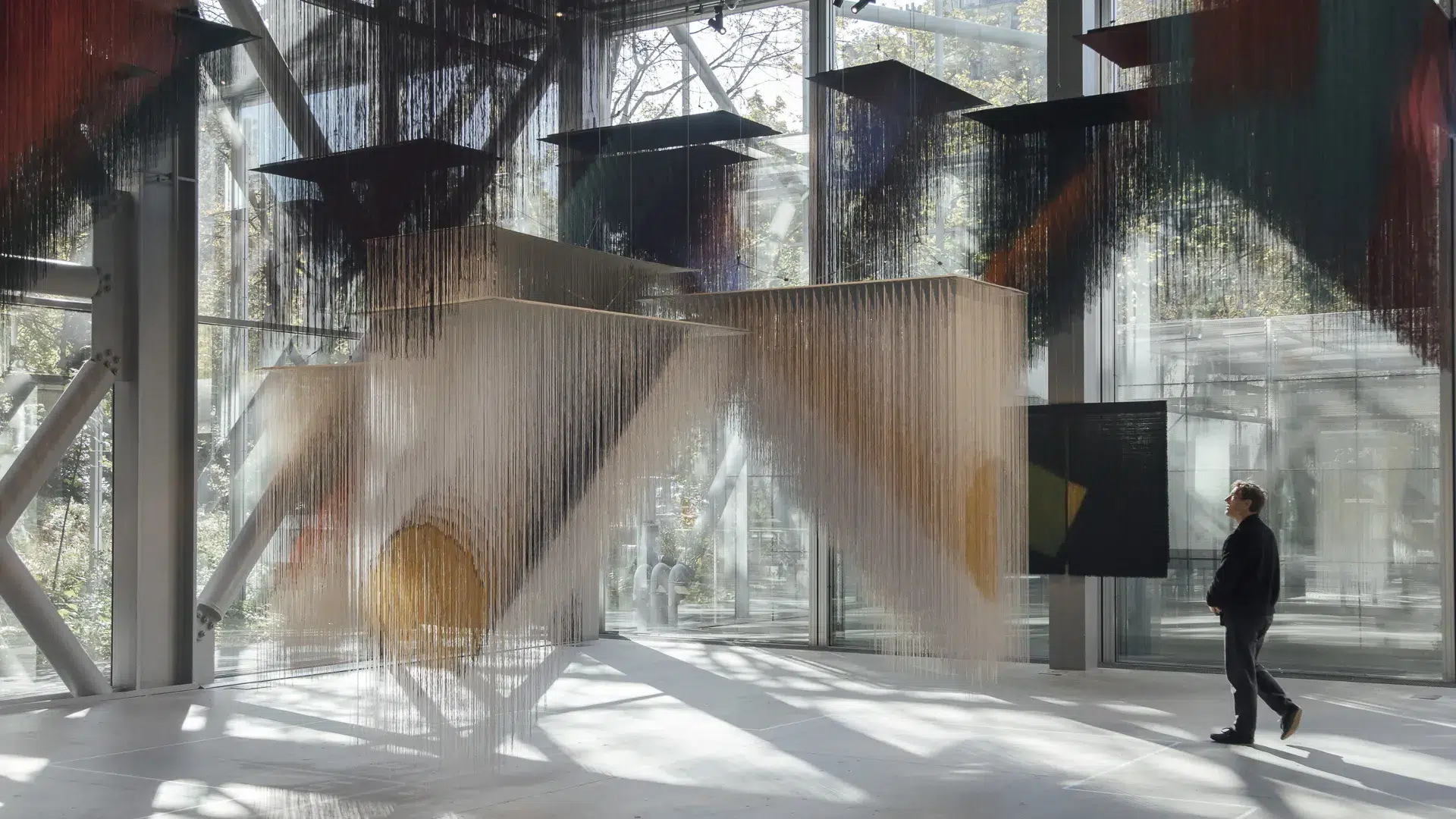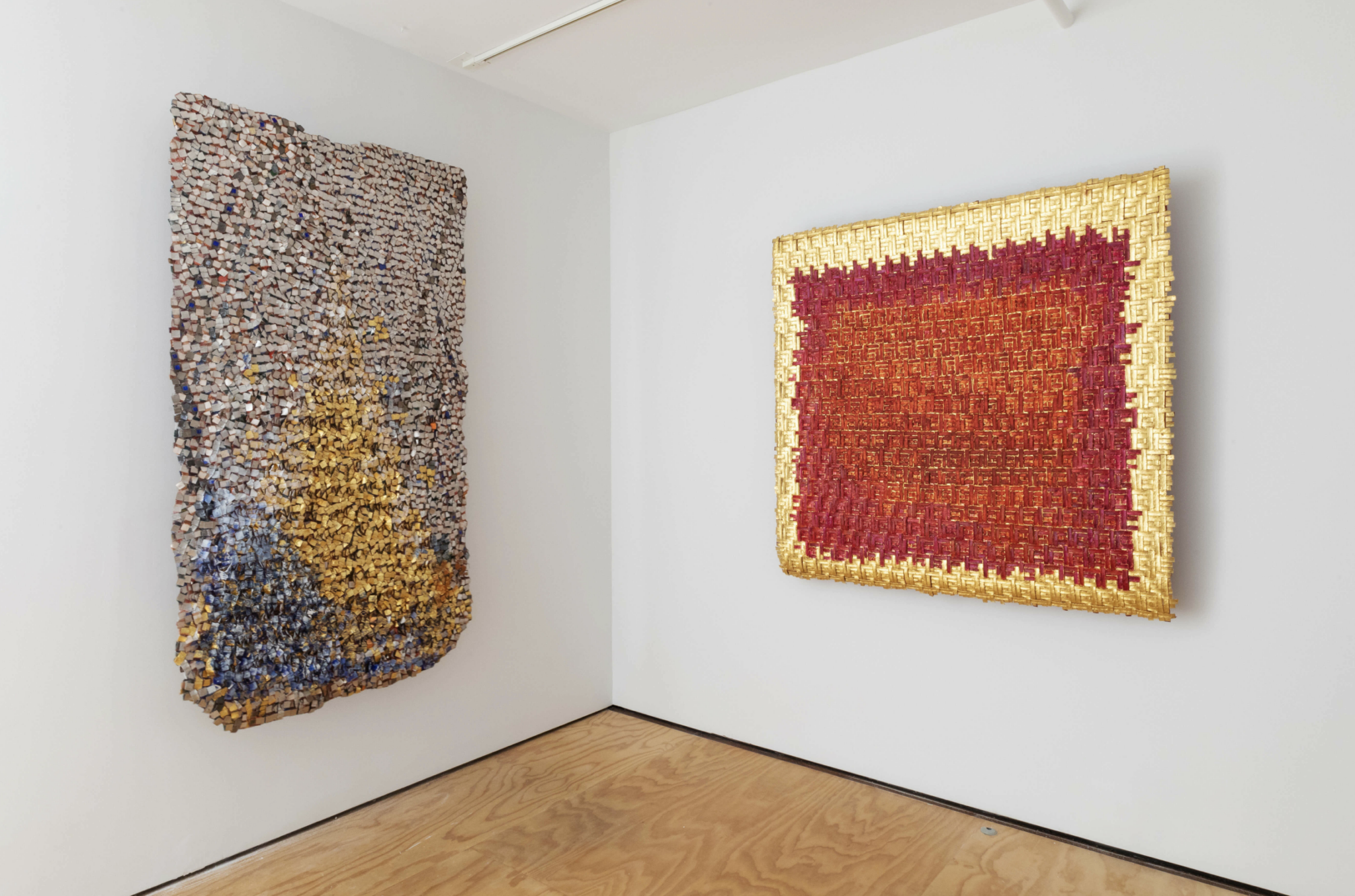 Gold is central to de Amaral’s practice, not as ornament but as a structural and luminous element. Its reflective qualities introduce depth, subtle tonal shifts, and a dynamic interplay with light, transforming fiber into radiant, monumental surfaces. While the reference to pre-Columbian gold traditions informs her aesthetic, her compositions remain firmly abstract, emphasizing repetition, seriality, and the tension between tactile softness and architectural rigidity. Throughout her long career, de Amaral has exhibited internationally, with landmark shows in Bogotá, New York, and Paris, earning recognition for pushing the boundaries of textile beyond craft into contemporary art. Her recent exhibition at Fondation Cartier in Paris from 12 October 2025 to 16 March 2025, featured large-scale suspended installations that filled the galleries with luminous, modular forms, inviting viewers to experience works that hover between curtain, wall, and sculpture, emphasizing her lifelong commitment to exploring the spatial, material, and conceptual possibilities of fiber.